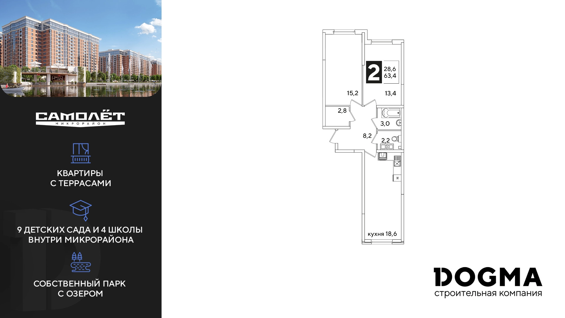 «САМОЛЁТ» — концептуальный жилой микрорайон, который расположен на северо-западе Краснодара, в районе Западного Обхода. Квартал спроектирован как «город в городе», поэтому здесь будет всё для комфортной жизни: современные дома с разными планировками, дороги, школы и детские сады, поликлиника, торговые центры, парки и аллеи. Микрорайон находится далеко от промышленных предприятий, сочетает удобство городской жизни и экологически благоприятную среду.