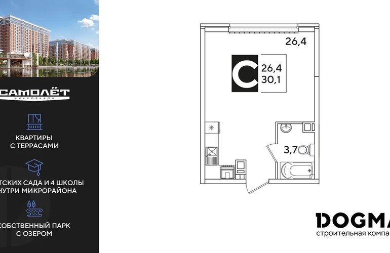 Студия, 30.1 кв.м., 2/16эт.