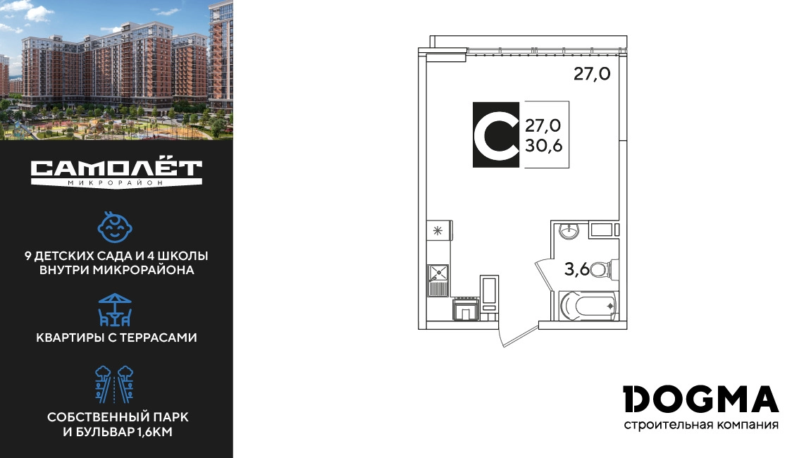 «САМОЛЁТ» — концептуальный жилой микрорайон, который расположен на северо-западе Краснодара, в районе Западного Обхода. Квартал спроектирован как «город в городе», поэтому здесь будет всё для комфортной жизни: современные дома с разными планировками, дороги, школы и детские сады, поликлиника, торговые центры, парки и аллеи. Микрорайон находится далеко от промышленных предприятий, сочетает удобство городской жизни и экологически благоприятную среду.