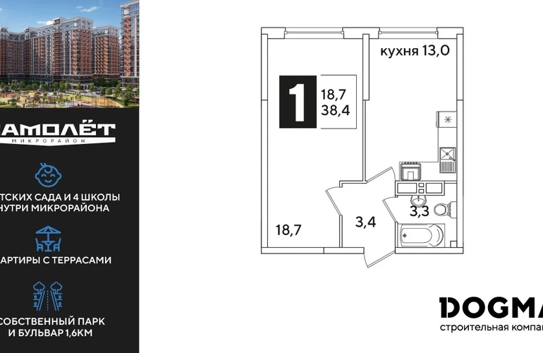 1-ком, 37.6 кв.м., 12/16эт.