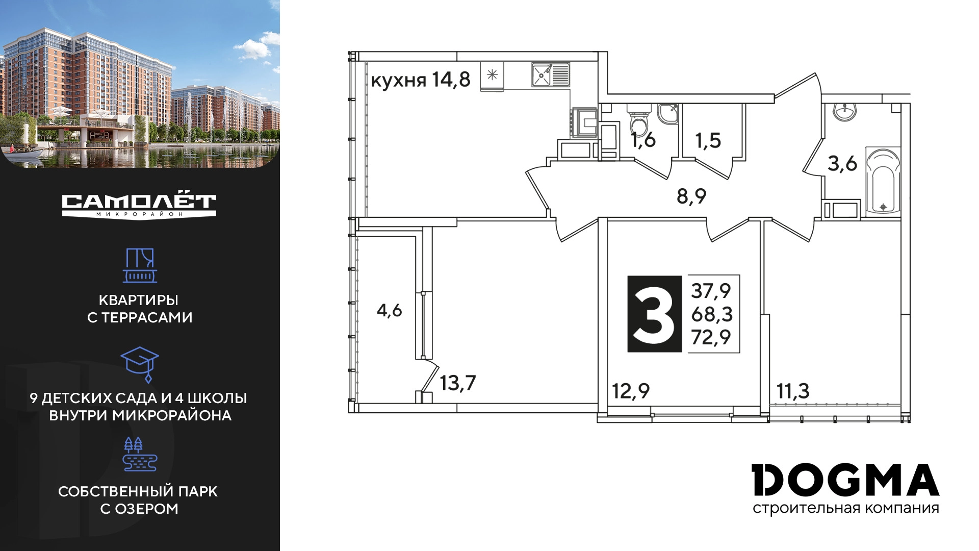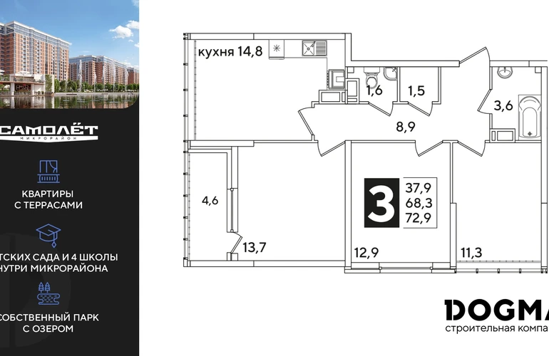 3-ком, 72.9 кв.м., 15/16эт.