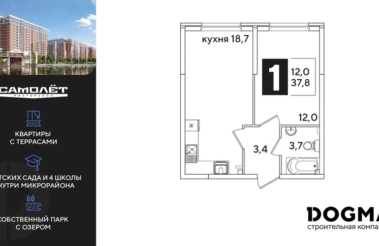 1-ком, 37.8 кв.м., 1/16эт.