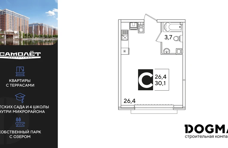 Студия, 30.1 кв.м., 9/16эт.