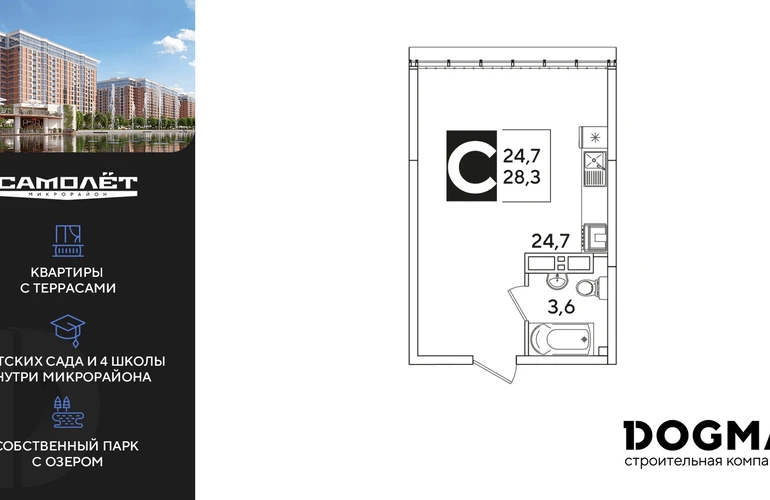 Студия, 28.3 кв.м., 16/16эт.