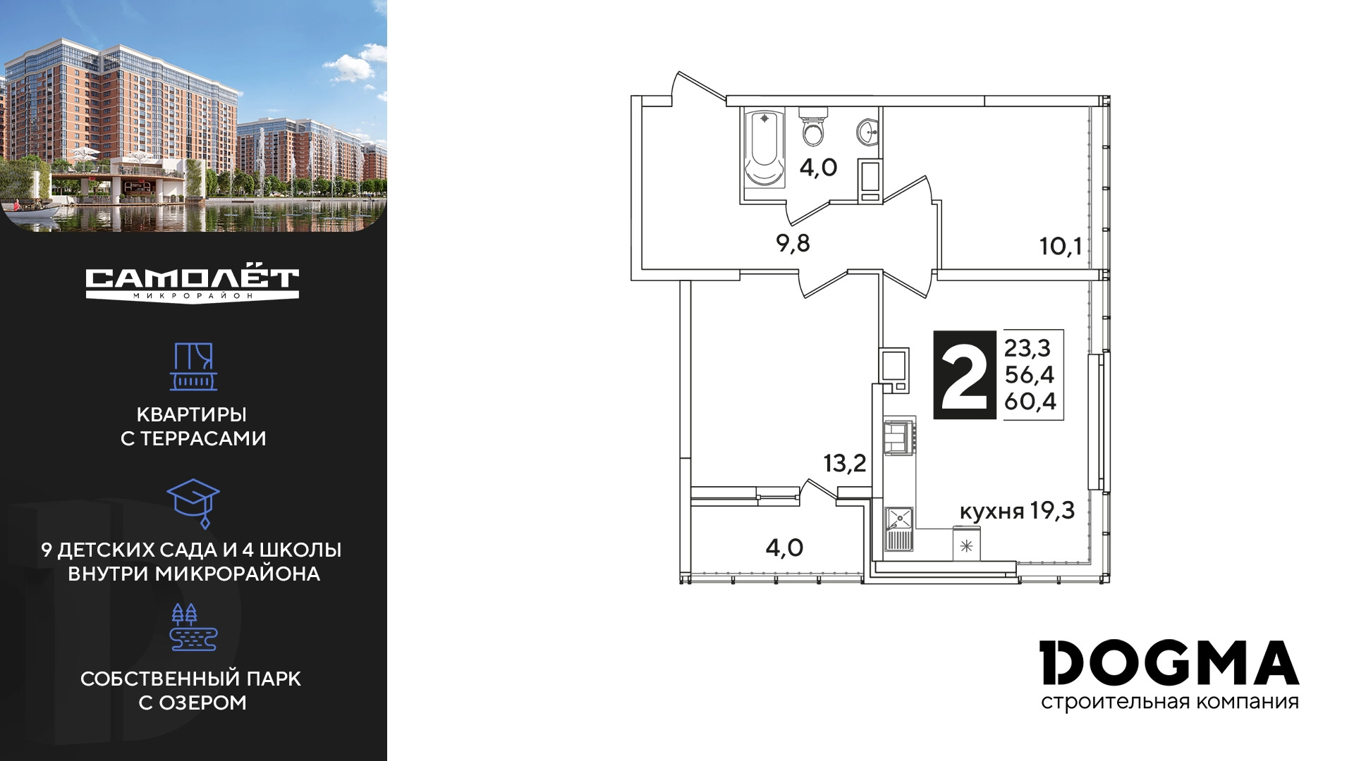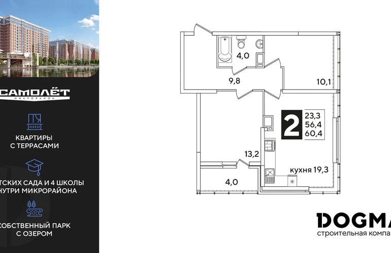 2-ком, 60.4 кв.м., 15/16эт.