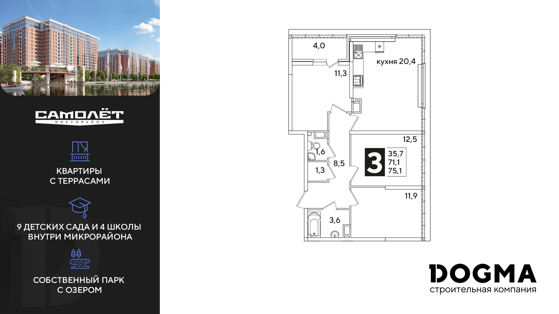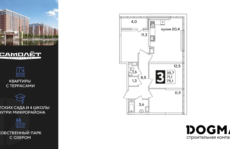 3-ком, 75.1 кв.м., 16/16эт.