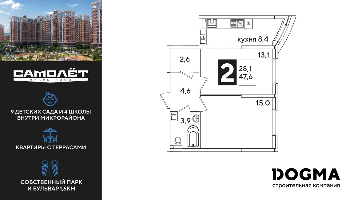 «САМОЛЁТ» — концептуальный жилой микрорайон, который расположен на северо-западе Краснодара, в районе Западного Обхода. Квартал спроектирован как «город в городе», поэтому здесь будет всё для комфортной жизни: современные дома с разными планировками, дороги, школы и детские сады, поликлиника, торговые центры, парки и аллеи. Микрорайон находится далеко от промышленных предприятий, сочетает удобство городской жизни и экологически благоприятную среду.