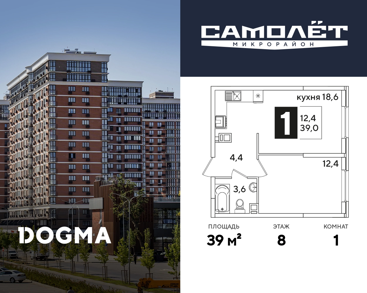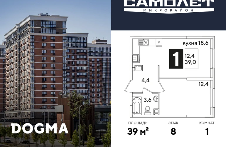 1-ком, 39 кв.м., 8/16эт.