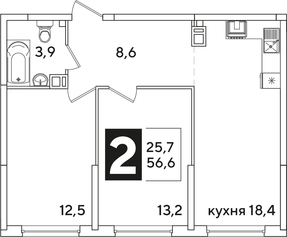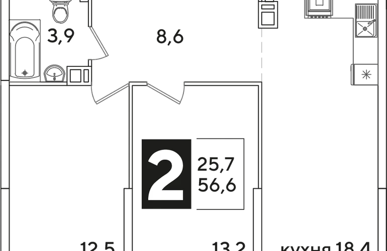 2-ком, 56.6 кв.м., 3/16эт.