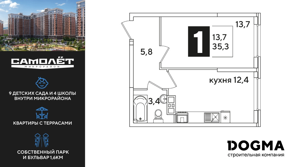 «САМОЛЁТ» — концептуальный жилой микрорайон, который расположен на северо-западе Краснодара, в районе Западного Обхода. Квартал спроектирован как «город в городе», поэтому здесь будет всё для комфортной жизни: современные дома с разными планировками, дороги, школы и детские сады, поликлиника, торговые центры, парки и аллеи. Микрорайон находится далеко от промышленных предприятий, сочетает удобство городской жизни и экологически благоприятную среду.