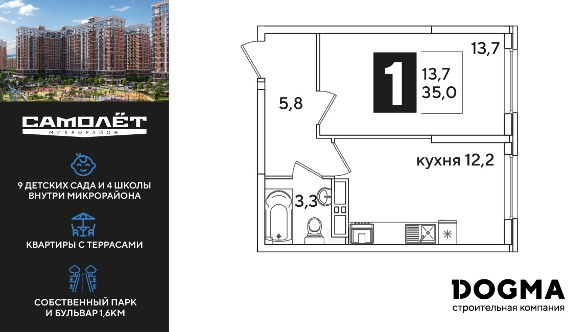 «САМОЛЁТ» — концептуальный жилой микрорайон, который расположен на северо-западе Краснодара, в районе Западного Обхода. Квартал спроектирован как «город в городе», поэтому здесь будет всё для комфортной жизни: современные дома с разными планировками, дороги, школы и детские сады, поликлиника, торговые центры, парки и аллеи. Микрорайон находится далеко от промышленных предприятий, сочетает удобство городской жизни и экологически благоприятную среду.