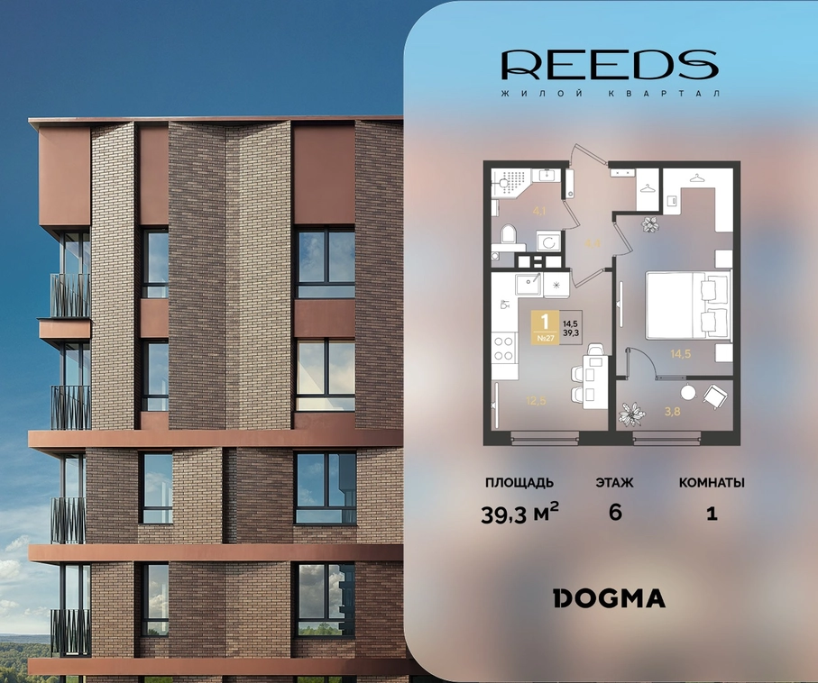 В продаже 1-комнатная квартира от застройщика DOGMA!ЖК REEDS, г. Краснодар, Литер 6