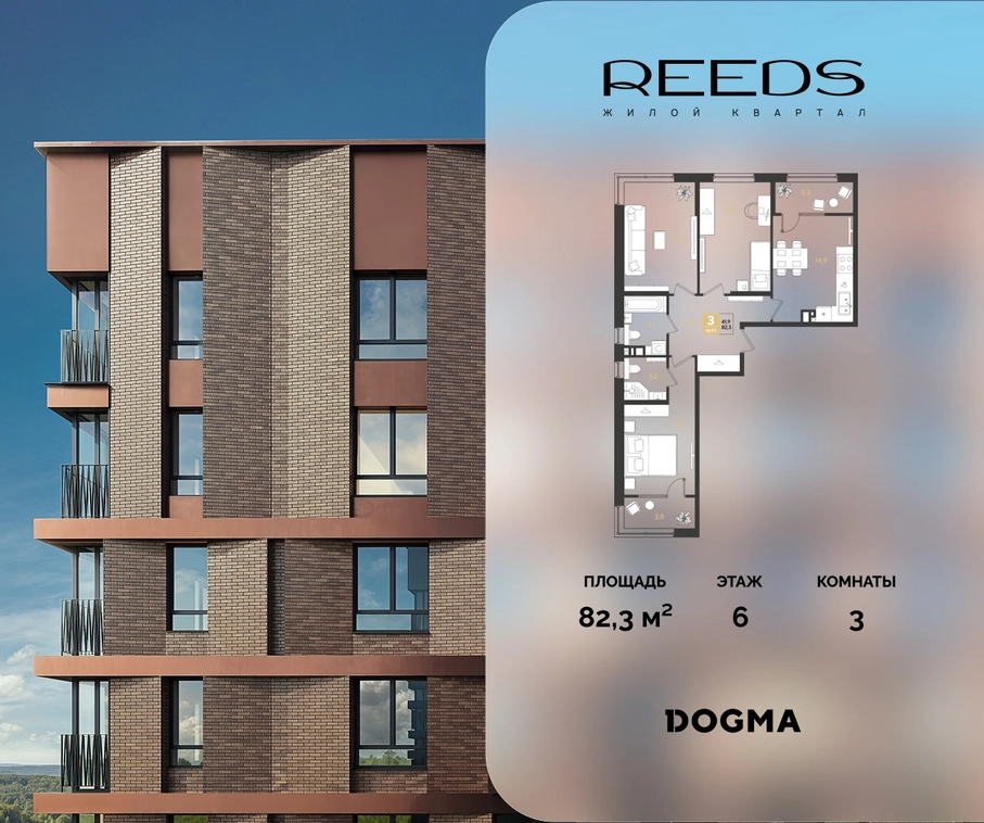 В продаже 3-комнатная квартира от застройщика DOGMA!ЖК REEDS, г. Краснодар, Литер 6