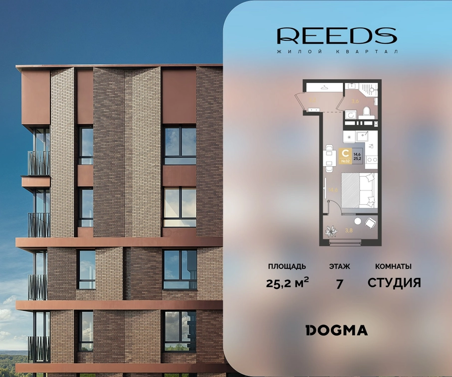 В продаже Студия от застройщика DOGMA!ЖК REEDS, г. Краснодар, Литер 6