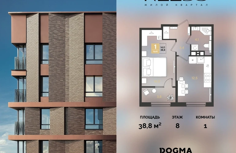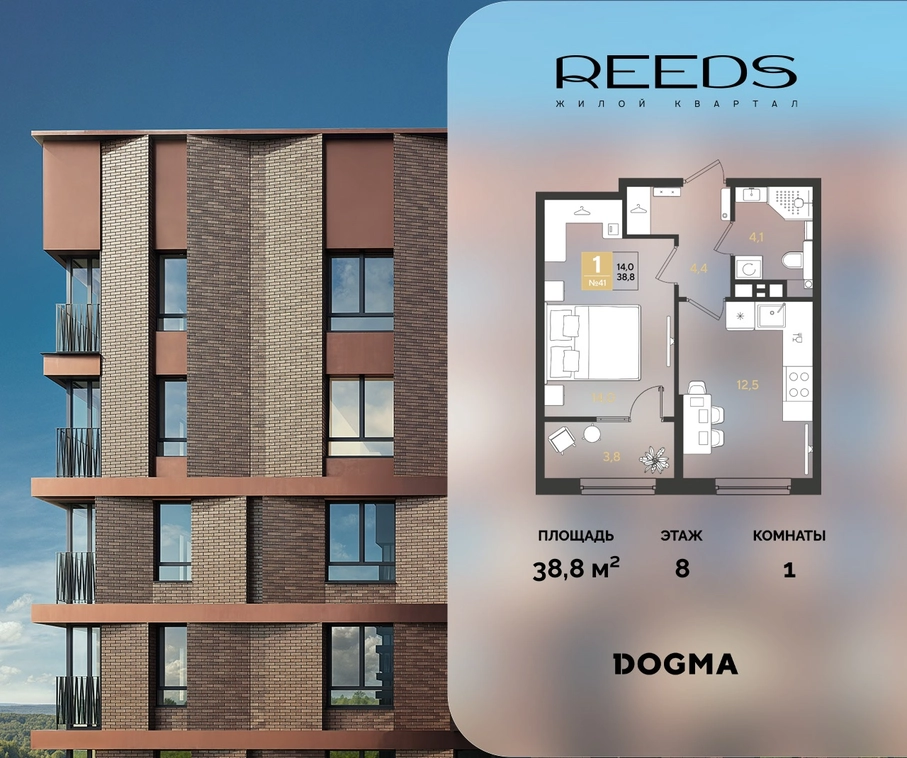 В продаже 1-комнатная квартира от застройщика DOGMA!ЖК REEDS, г. Краснодар, Литер 6