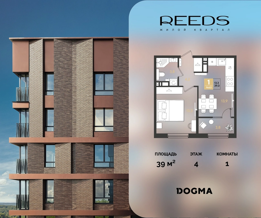 В продаже 1-комнатная квартира от застройщика DOGMA!ЖК REEDS, г. Краснодар, Литер 6