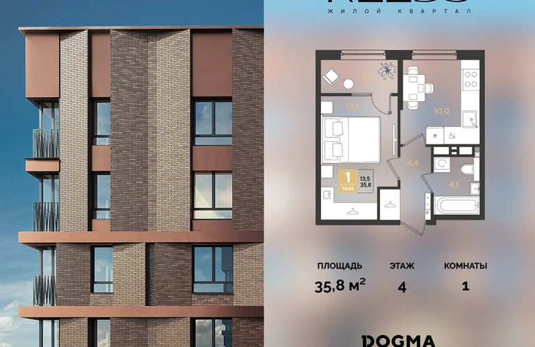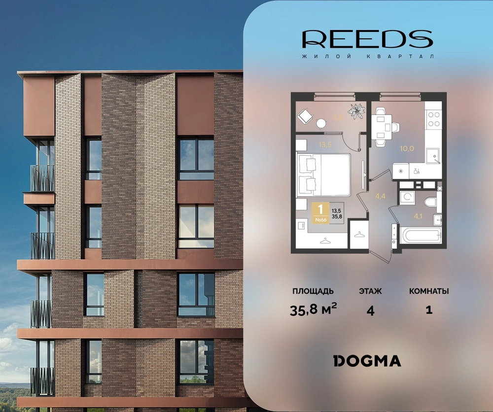 В продаже 1-комнатная квартира от застройщика DOGMA!ЖК REEDS, г. Краснодар, Литер 6