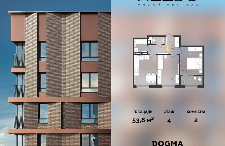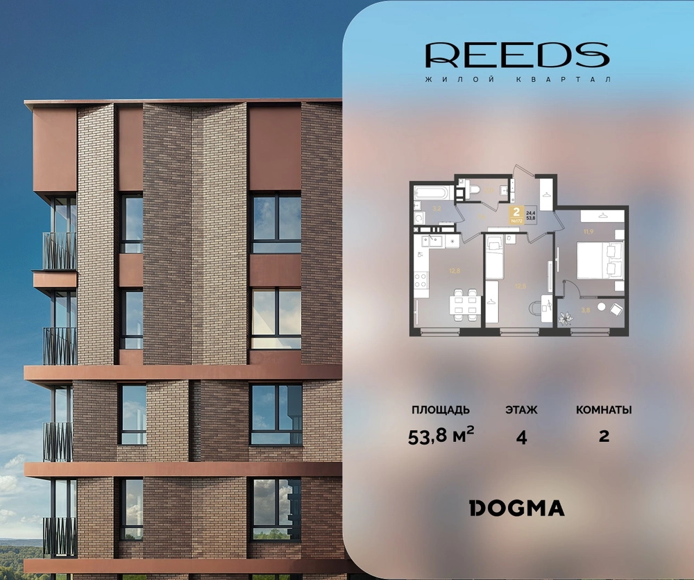 В продаже 2-комнатная квартира от застройщика DOGMA!ЖК REEDS, г. Краснодар, Литер 6