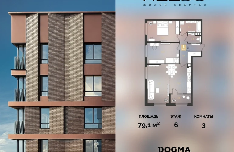 В продаже 3-комнатная квартира от застройщика DOGMA!ЖК REEDS, г. Краснодар, Литер 6