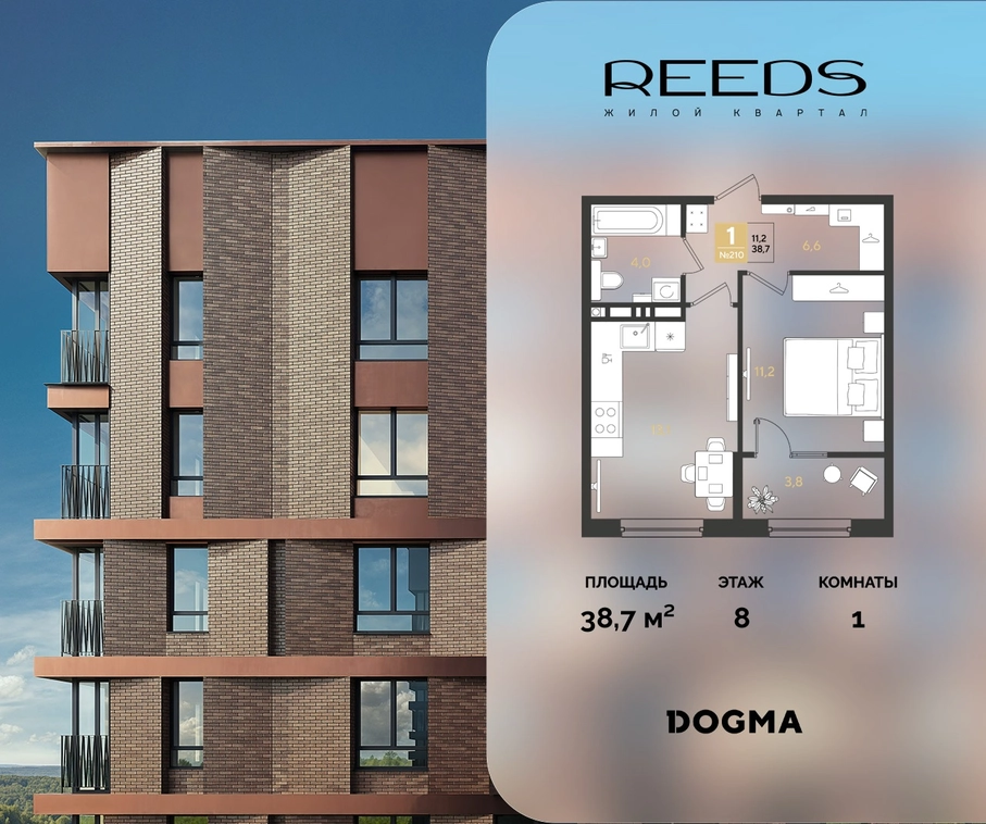 В продаже 1-комнатная квартира от застройщика DOGMA!ЖК REEDS, г. Краснодар, Литер 6