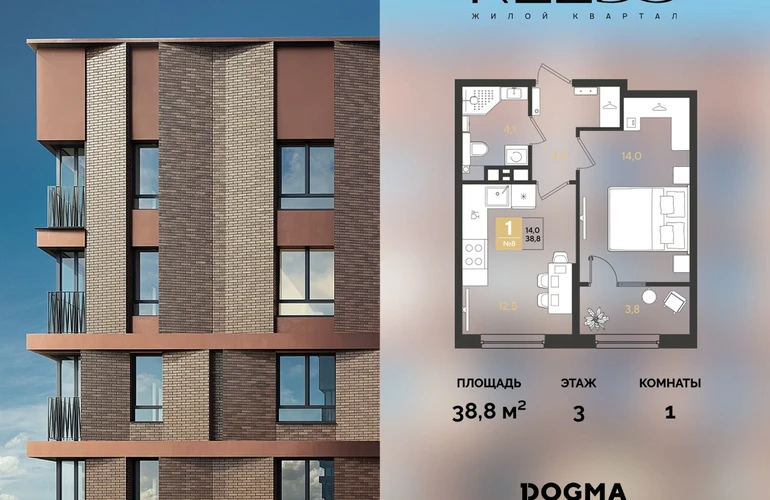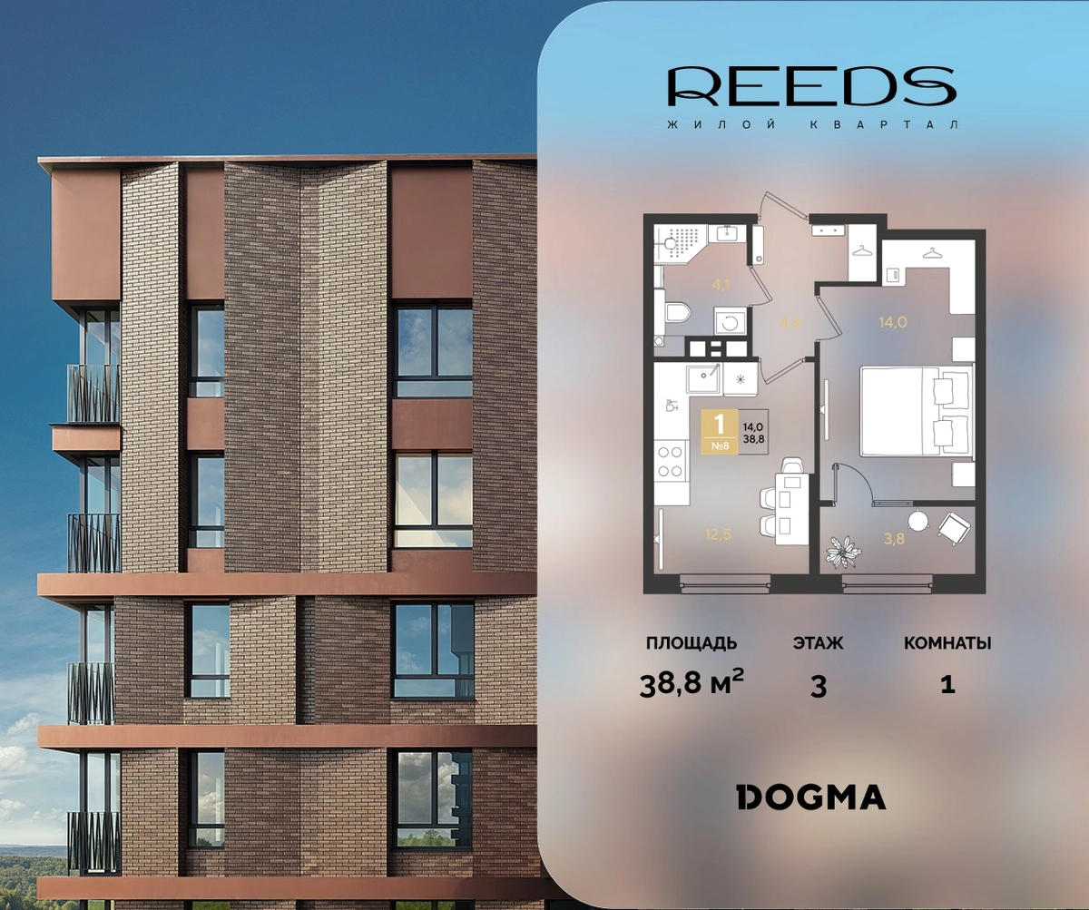 В продаже 1-комнатная квартира от застройщика DOGMA!ЖК REEDS, г. Краснодар, Литер 4