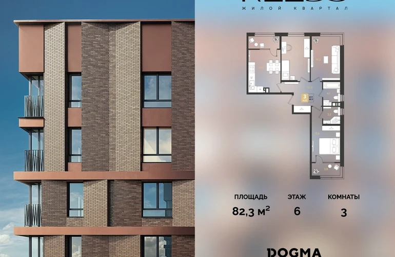 В продаже 3-комнатная квартира от застройщика DOGMA!ЖК REEDS, г. Краснодар, Литер 4