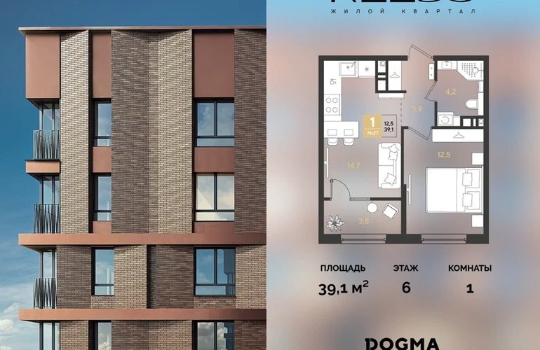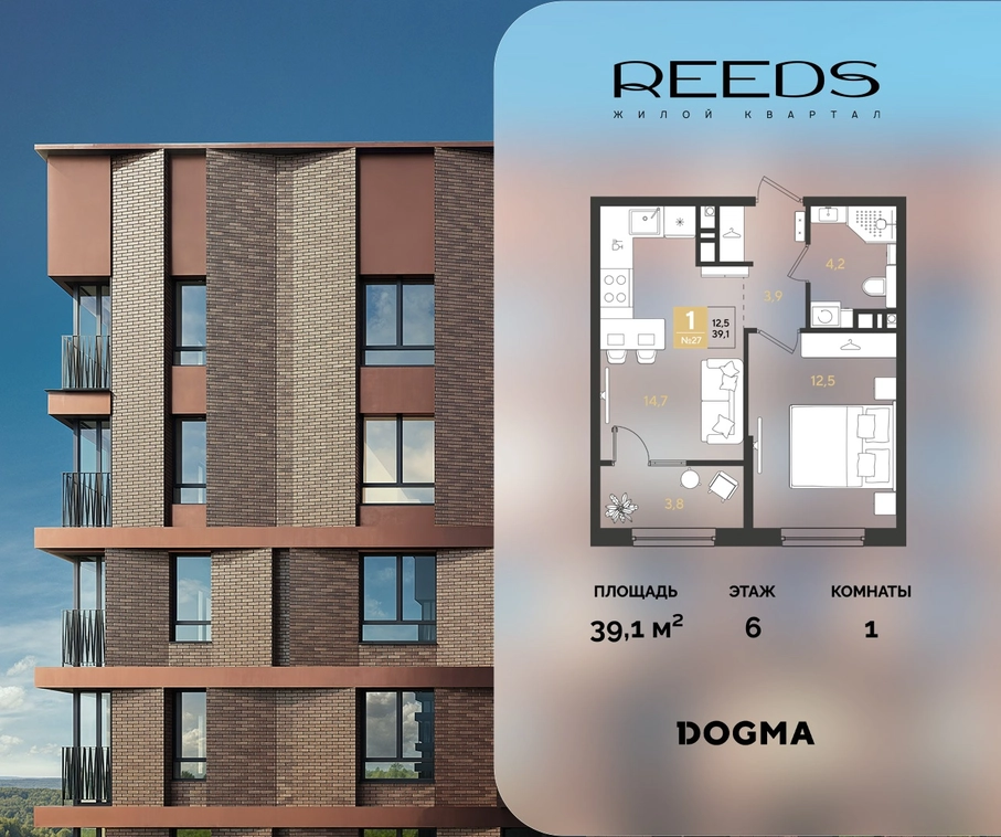 В продаже 1-комнатная квартира от застройщика DOGMA!ЖК REEDS, г. Краснодар, Литер 4