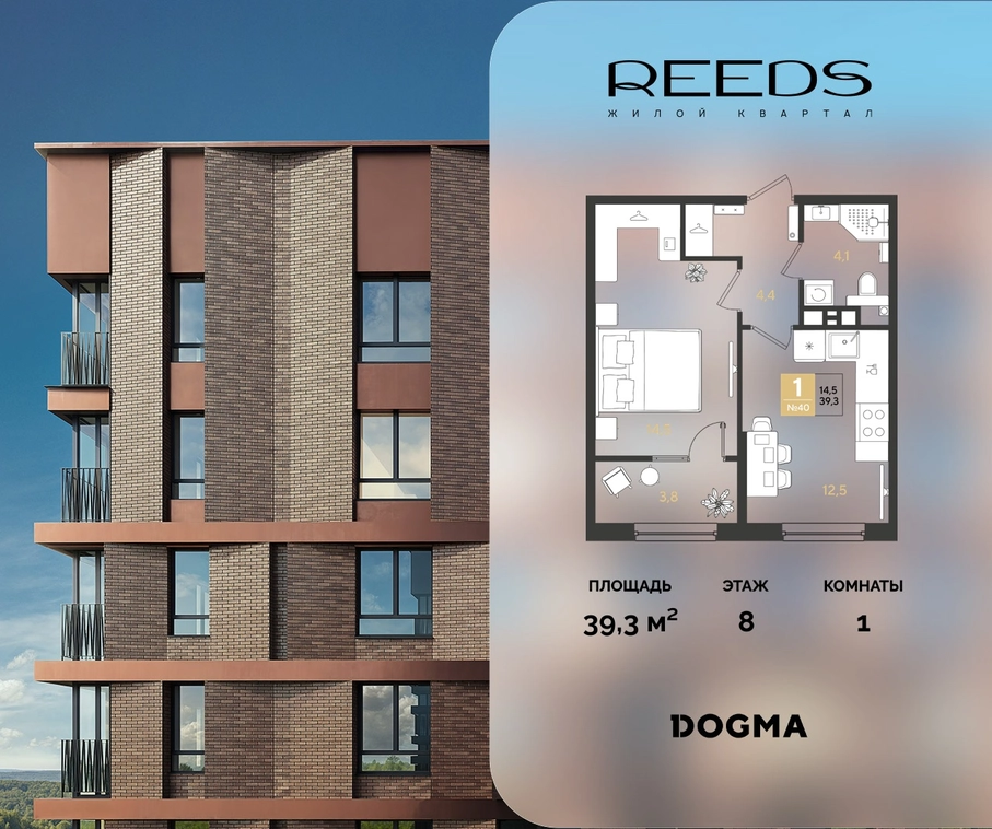В продаже 1-комнатная квартира от застройщика DOGMA!ЖК REEDS, г. Краснодар, Литер 4