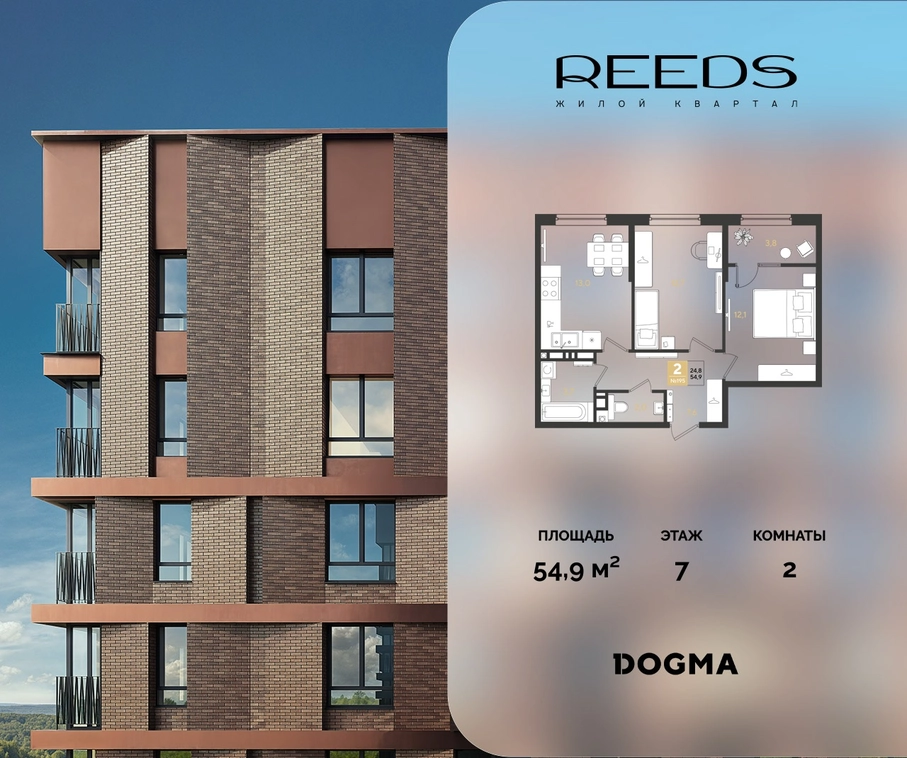 В продаже 2-комнатная квартира от застройщика DOGMA!ЖК REEDS, г. Краснодар, Литер 4