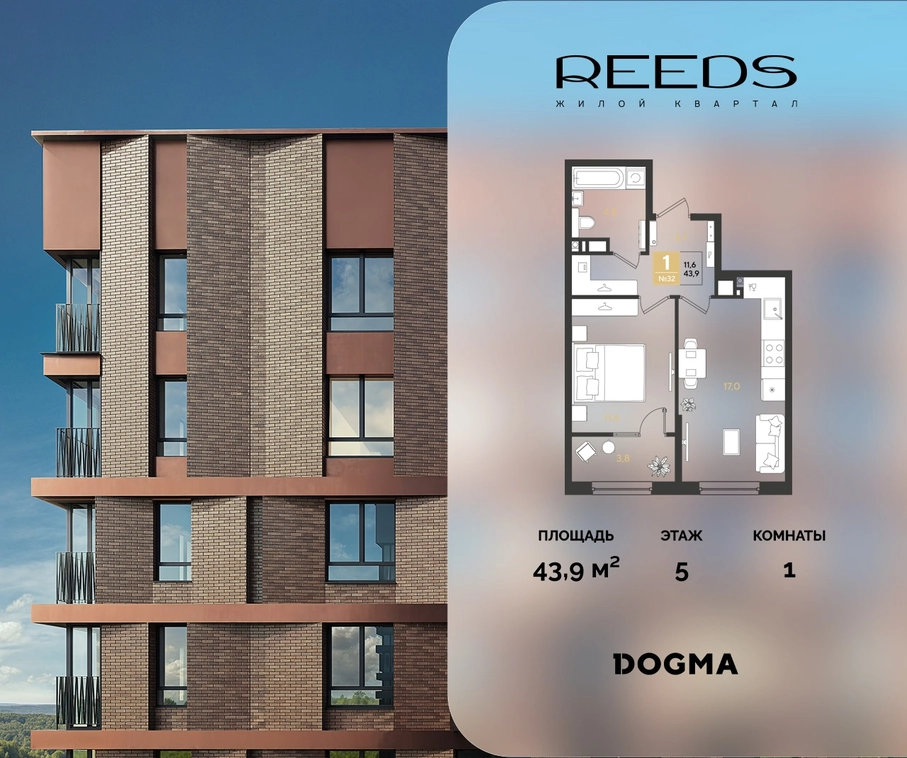 В продаже 1-комнатная квартира от застройщика DOGMA!ЖК REEDS, г. Краснодар, Литер 5