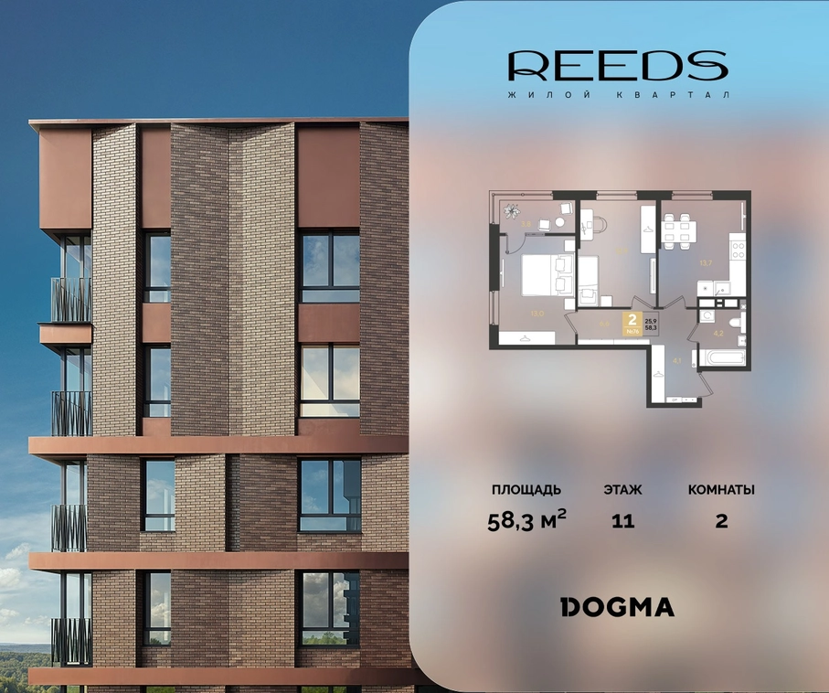 В продаже 2-комнатная квартира от застройщика DOGMA!ЖК REEDS, г. Краснодар, Литер 5