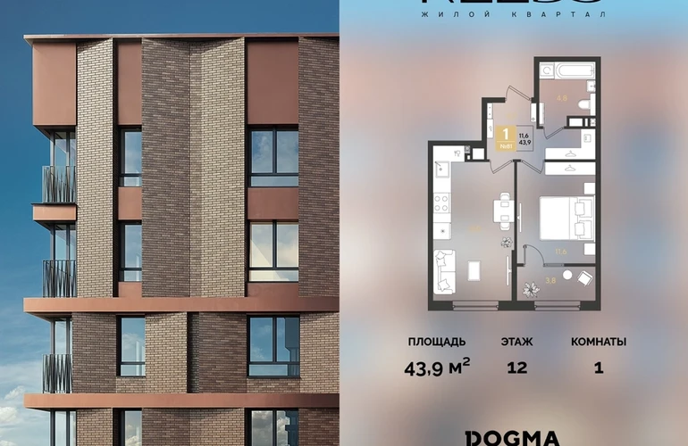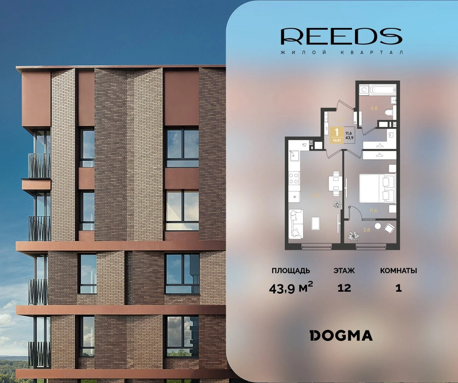 В продаже 1-комнатная квартира от застройщика DOGMA!ЖК REEDS, г. Краснодар, Литер 5