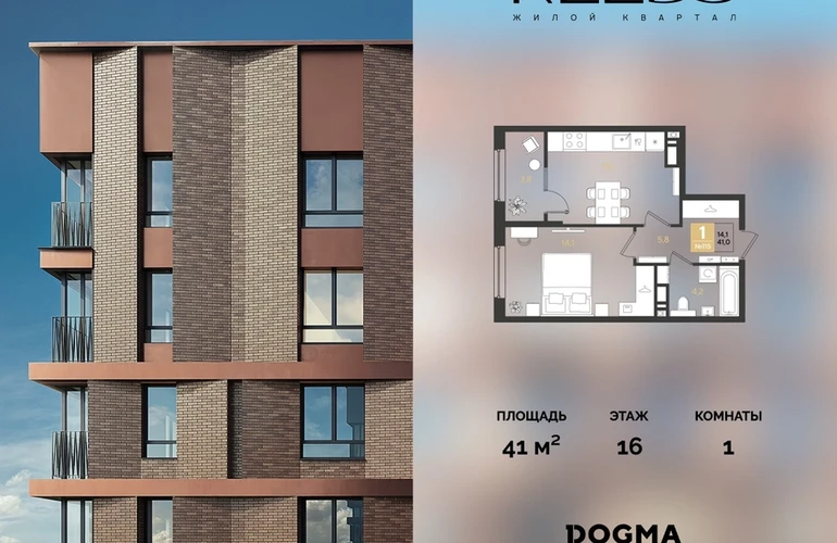 В продаже 1-комнатная квартира от застройщика DOGMA!ЖК REEDS, г. Краснодар, Литер 5