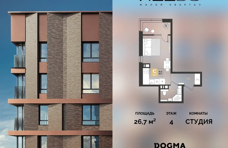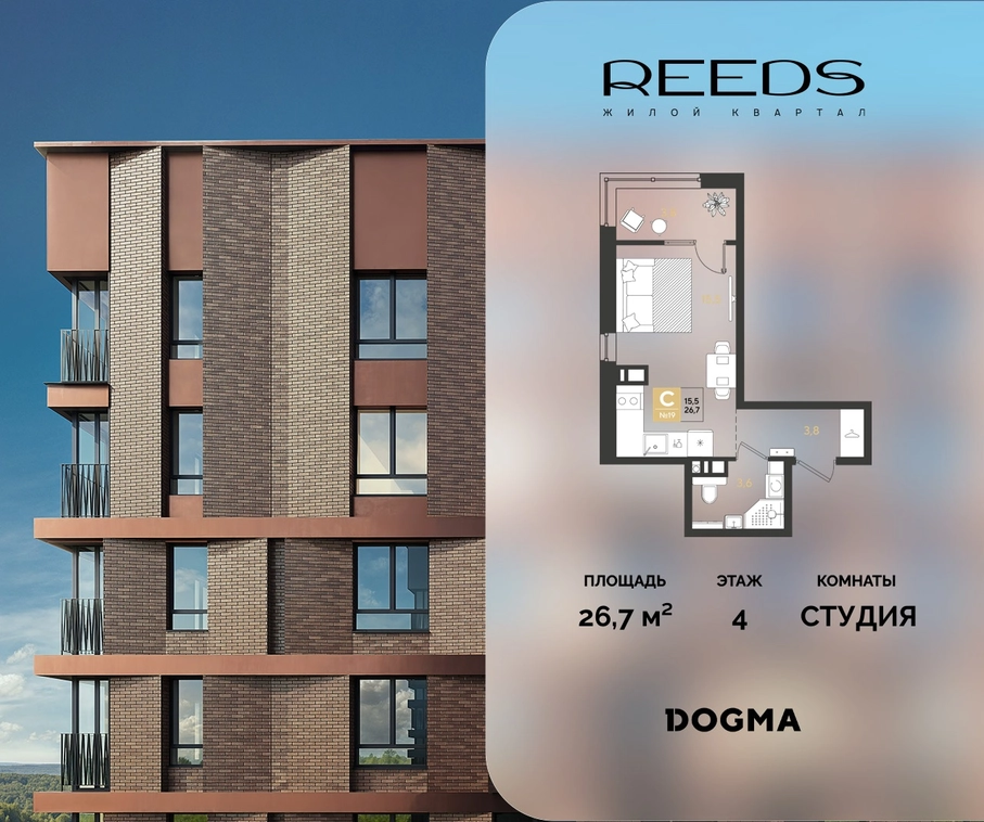 В продаже Студия от застройщика DOGMA!ЖК REEDS, г. Краснодар, Литер 15