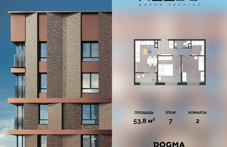 В продаже 2-комнатная квартира от застройщика DOGMA!ЖК REEDS, г. Краснодар, Литер 15