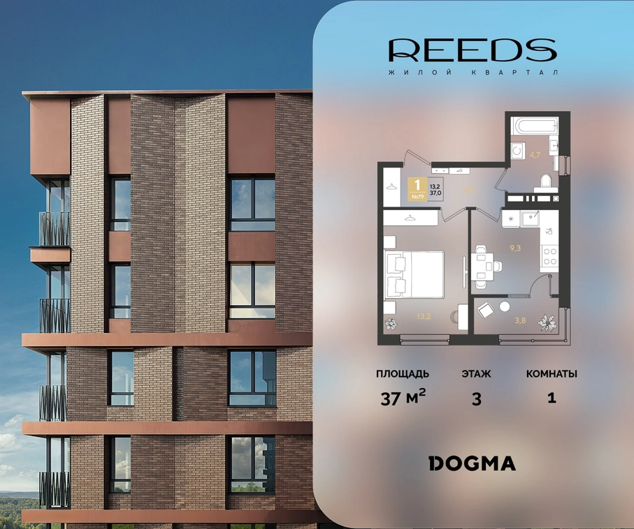 В продаже 1-комнатная квартира от застройщика DOGMA!ЖК REEDS, г. Краснодар, Литер 15