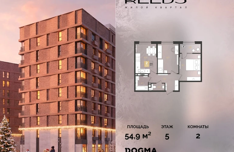 В продаже 2-комнатная квартира от застройщика DOGMA!ЖК REEDS, г. Краснодар, Литер 15
