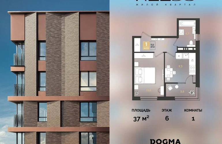 В продаже 1-комнатная квартира от застройщика DOGMA!ЖК REEDS, г. Краснодар, Литер 15
