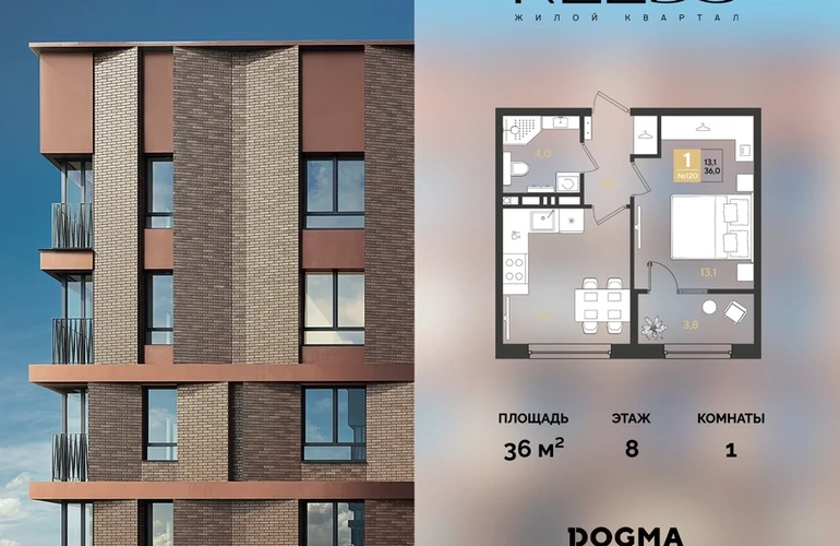 В продаже 1-комнатная квартира от застройщика DOGMA!ЖК REEDS, г. Краснодар, Литер 15