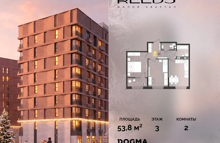 В продаже 2-комнатная квартира от застройщика DOGMA!ЖК REEDS, г. Краснодар, Литер 14