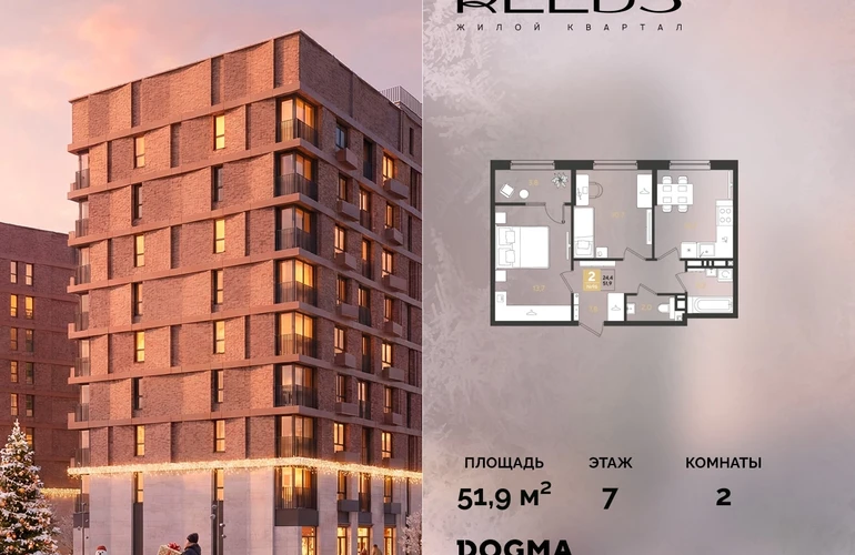 В продаже 2-комнатная квартира от застройщика DOGMA!ЖК REEDS, г. Краснодар, Литер 14