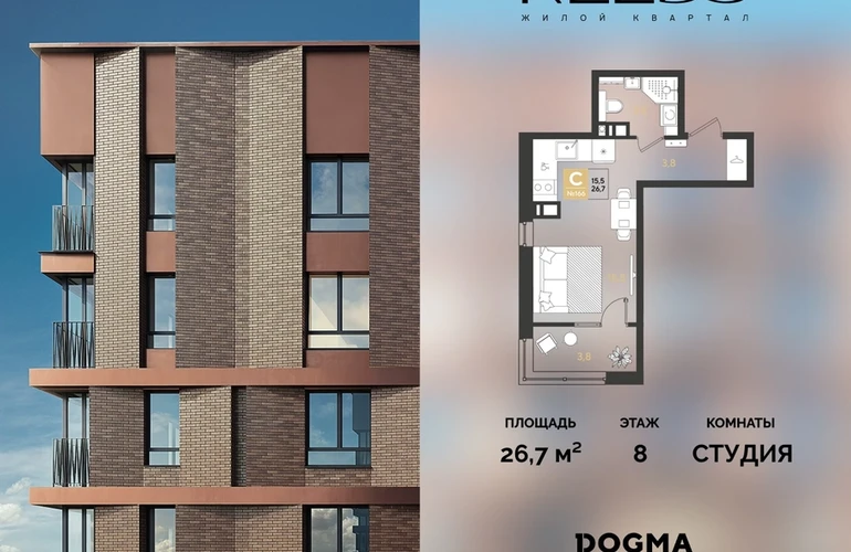 В продаже Студия от застройщика DOGMA!ЖК REEDS, г. Краснодар, Литер 14